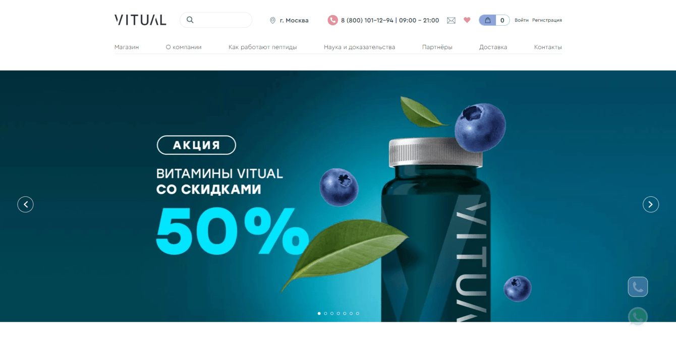 Сайт vitual.ru представляет собой интернет-магазин по продаже биологически активных добавок, витаминов и пищевых добавок. Он имеет достаточно широкий ассортимент продукции, разделенный на соответствующие категории и подкатегории. Контент состоит из описаний товаров, общей информации о БАДах и их пользе.