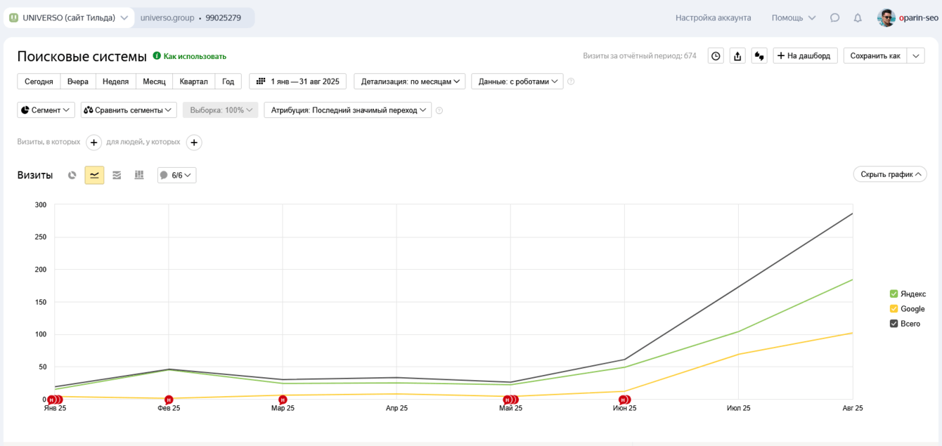Мы также провели аудит текущей структуры сайта, чтобы понять, какие страницы необходимы для корректной и эффективной индексации. Эти работы позволили нам заложить фундамент для будущего SEO-продвижения.