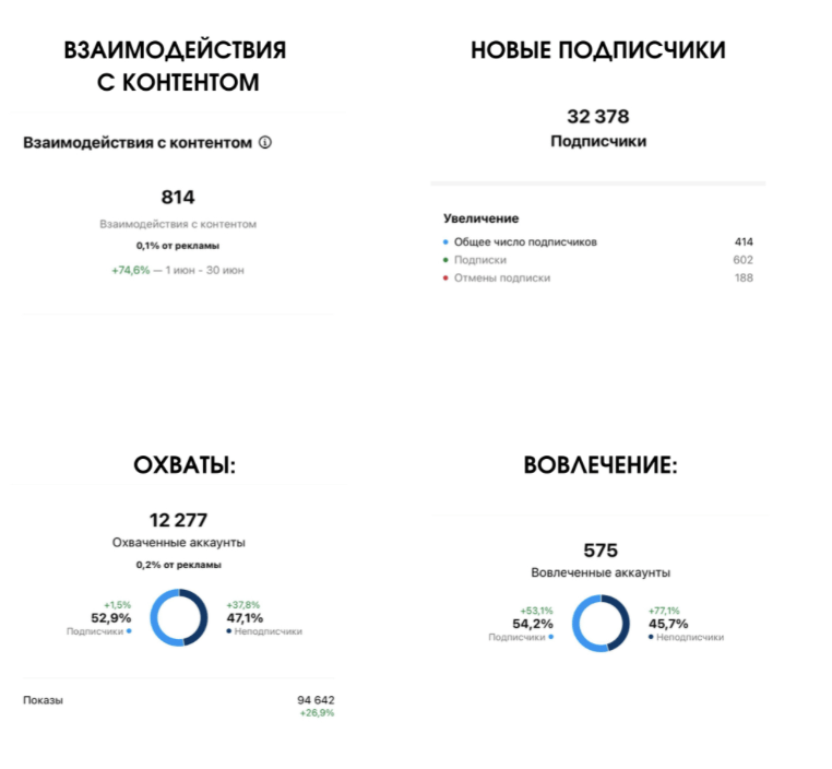 2. Повышение вовлеченности: в июне было зафиксировано 814 взаимодействий с контентом и 575 вовлеченных аккаунтов. Это свидетельствует о том, что наш контент не только достигает аудитории, но и побуждает ее к активному взаимодействию.