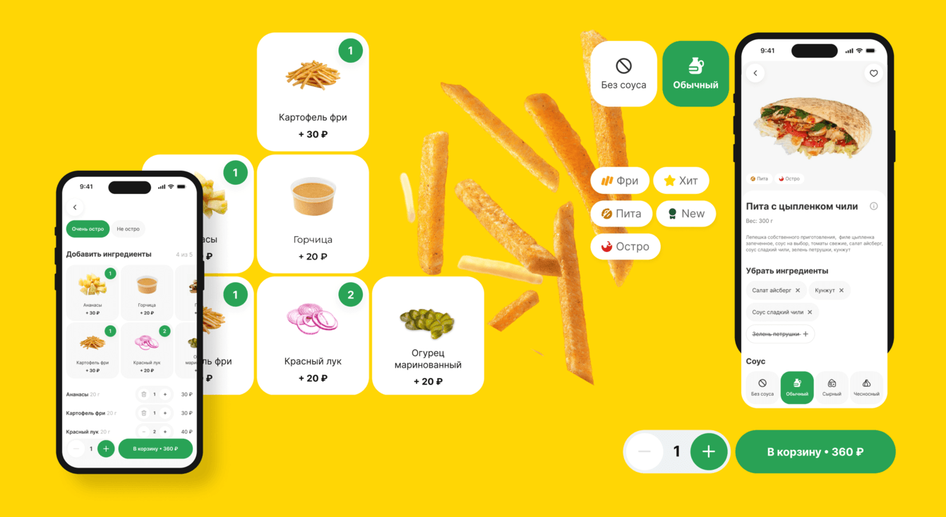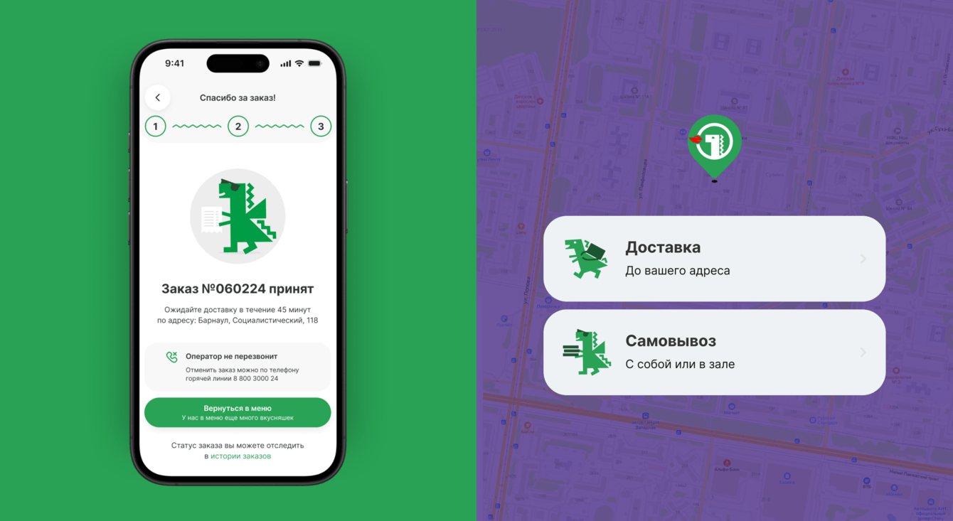 Совместно мы работали не только над тем, чтобы пользователь мог быстро утолить голод, но и над тем, чтобы взаимодействие было по- настоящему удобным, простым и приятным. Положительные отзывы в сторах подтвердили успех.