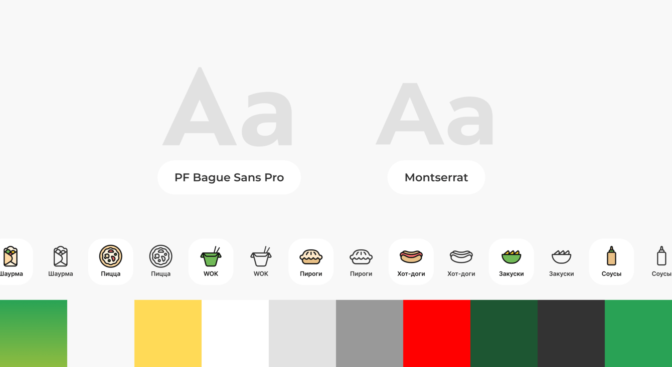 Отдельное внимание уделили типографике. Использовали фирменные шрифты, добавили акценты на важные элементы. Для названия блюд и цен применили жирный шрифт — такие детали улучшают восприятие информации.