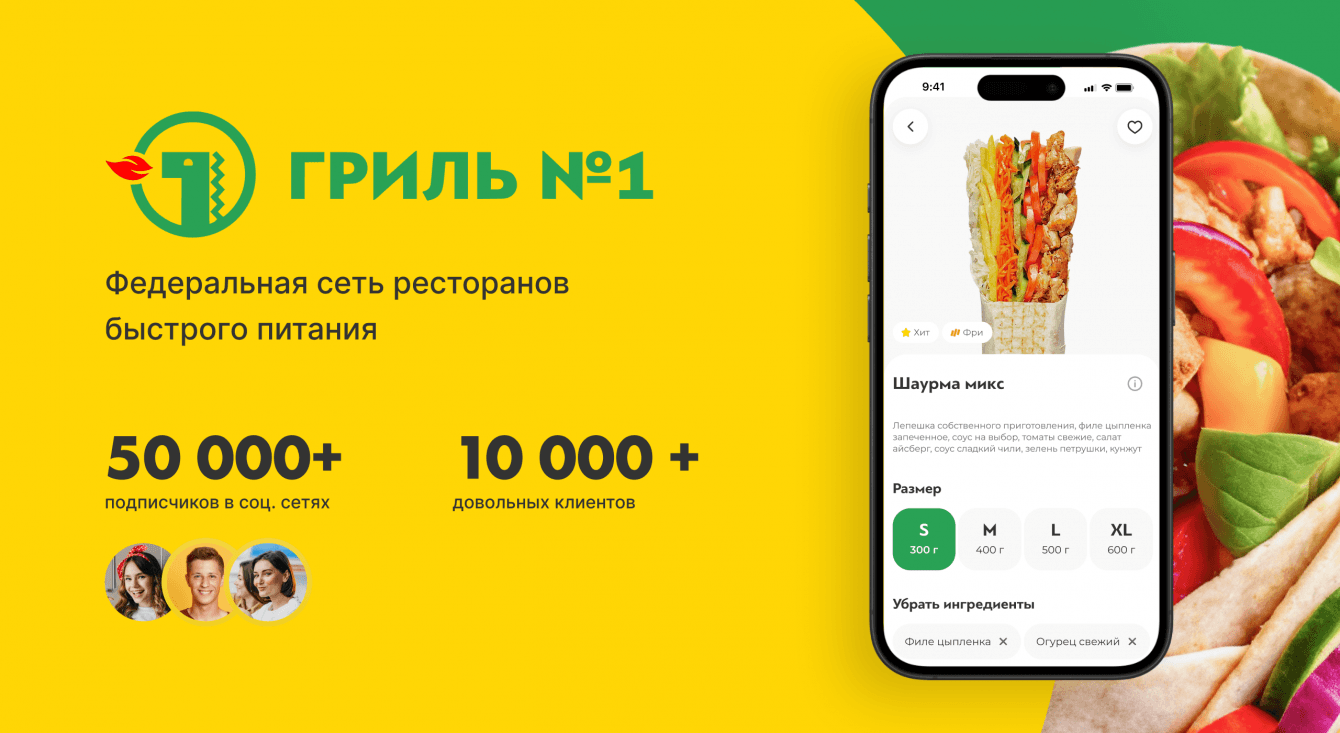 «Гриль №1» — федеральная сеть ресторанов быстрого питания. Клиенту понадобилось новое приложение, так как старое не позволяло создать тот визуал и функционал, который хотелось. Это проблема многих коробочных продуктов.