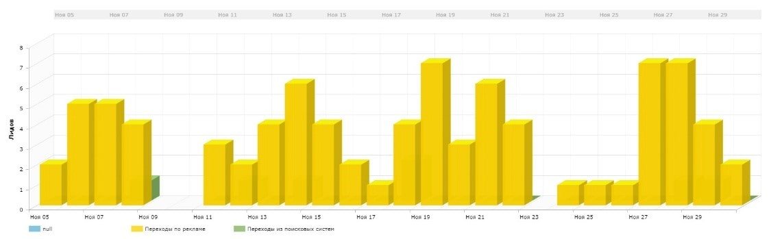 Статистика коллтрекинга Callibri помогла нам не только наиболее точно отследить количество первичных звонков и обращений на электронную почту, но и определить, из каких рекламных кампаний пришли клиенты, в какие дни недели было наибольшее количество обращений. Преимущественно это были звонки или письма от клиентов.