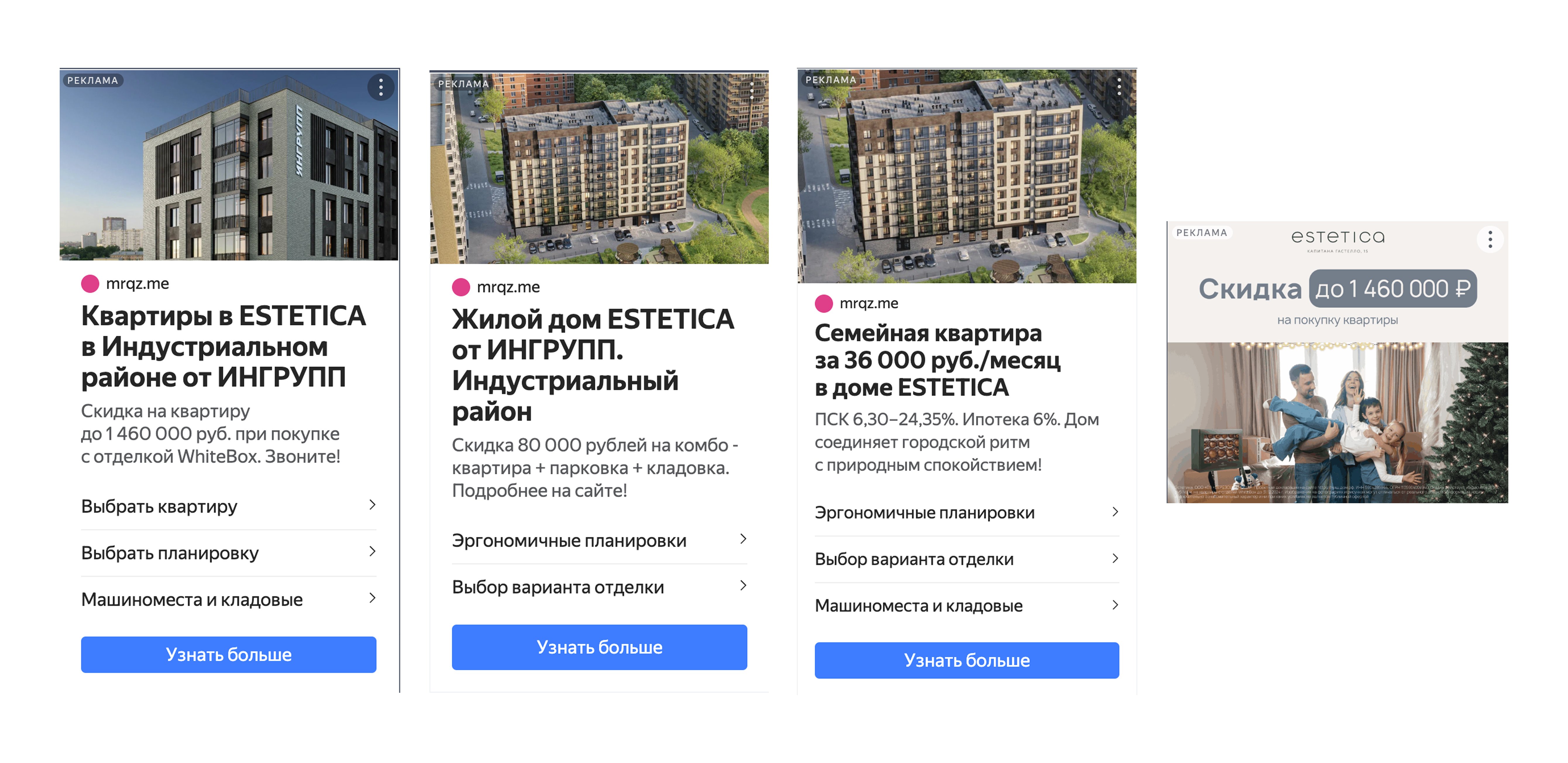 — ценовые предложения: «семейная ипотека от 5,85%», «льготная ипотека от 0,01%»;
