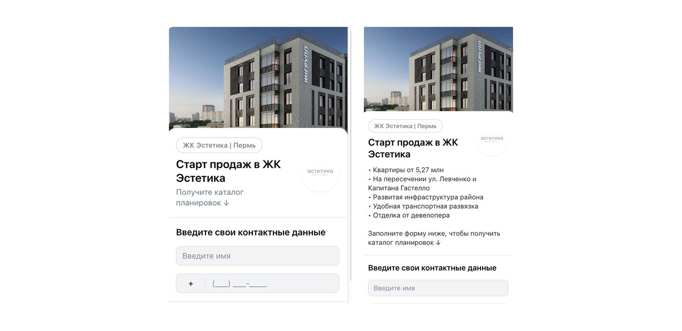 Сейчас продолжаем активно использовать краткую форму, но и от развернутой не отказываемся. Регулярно корректируем её: меняем УТП, рассказываем о новых акциях и предложениях девелопера.