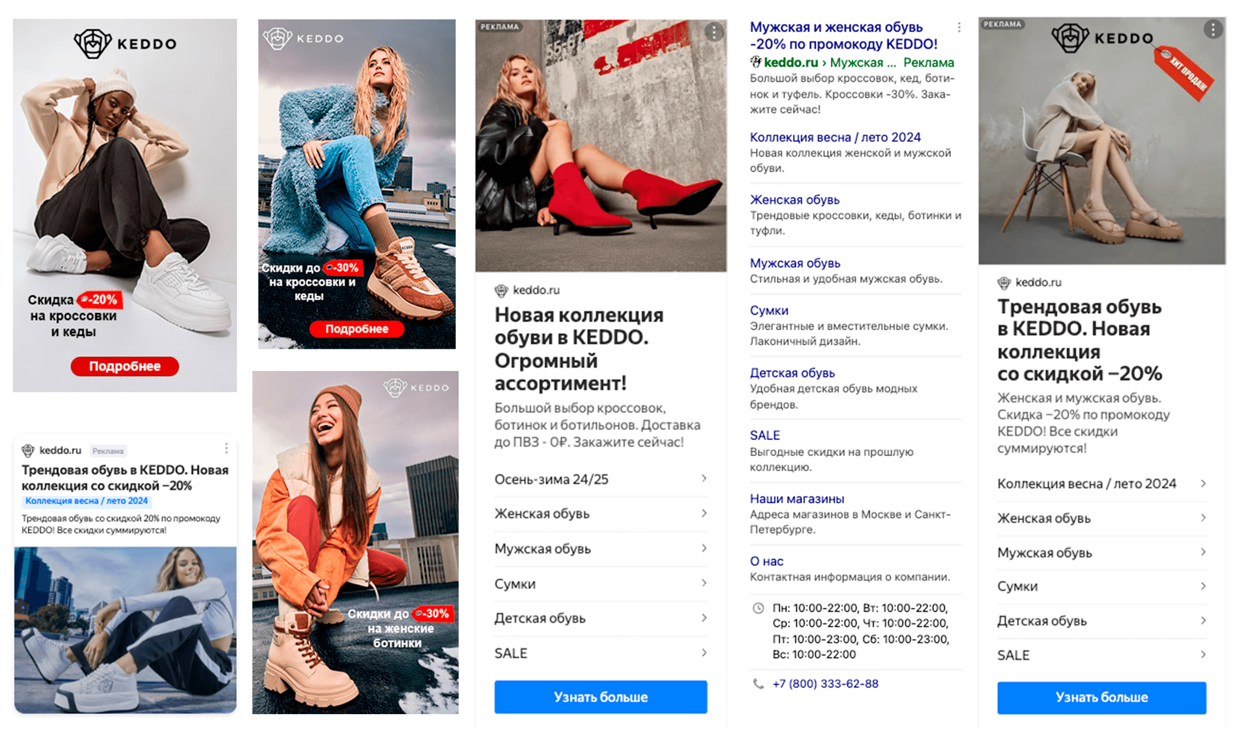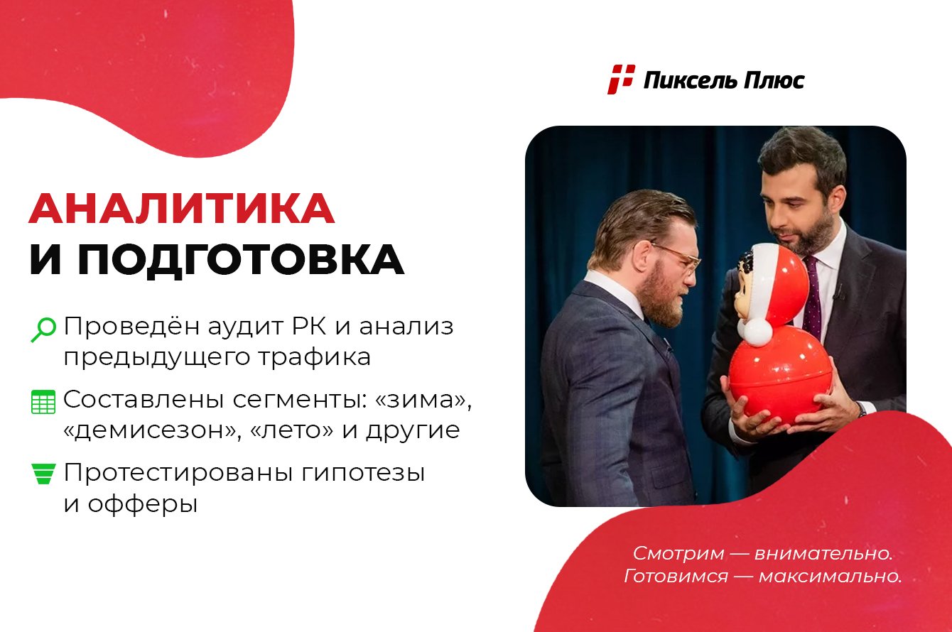 Особое внимание уделялось крупным распродажам — таким как Black Friday 2024, Киберпонедельник и другие. Под акции запускались отдельные кампании в РСЯ с вручную отрисованными баннерами и адаптированными посадочными.