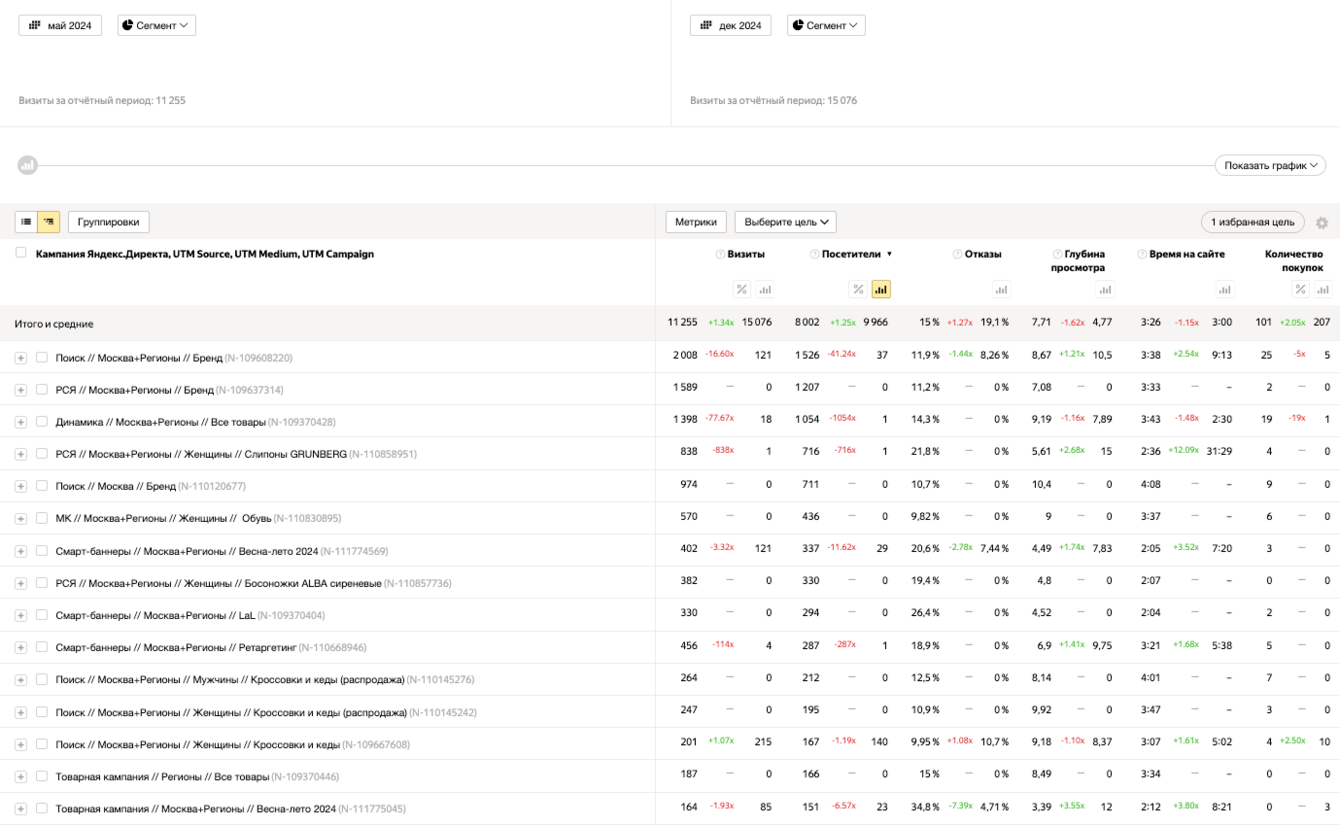 Каждый сезон клиент обновлял коллекцию, поэтому рекламные кампании с товарным фидом приходилось настраивать заново: заново запускались РК под новую категорию товаров, актуализировалась семантика и креативы.