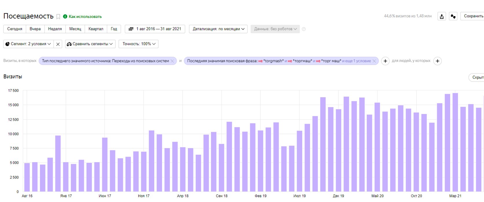 За обозначенный период продвижения сайта https://torgmash-avto.ru специалистами компании VBI проведен комплекс работ по оптимизации ресурса, в результате чего достигнуты стабильные положительные результаты: