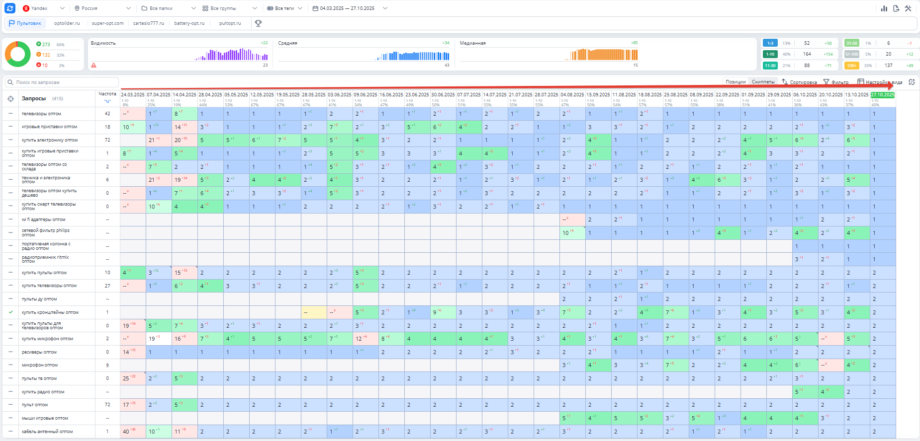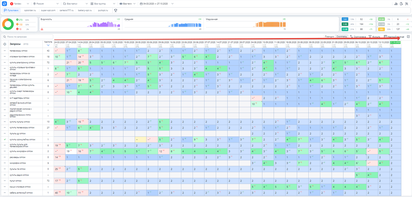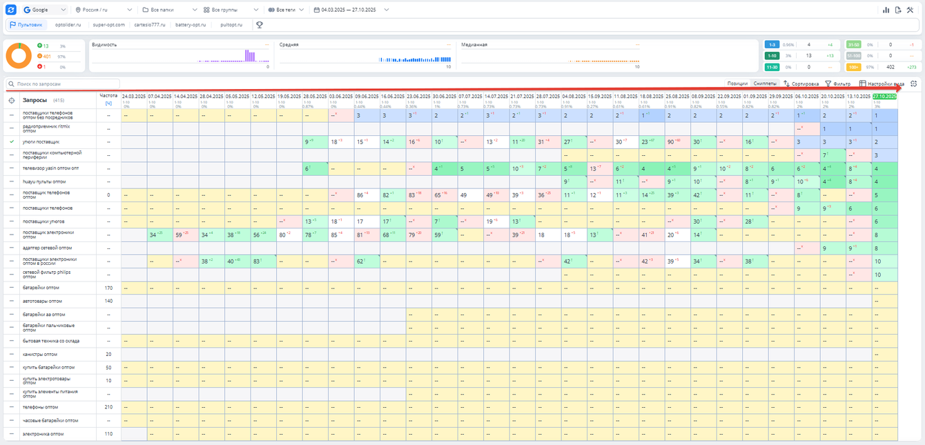 Несмотря на это, доля видимости сайта стабильно растёт — Яндекс начал ранжировать сайт по всем категориям каталога, включая ранее неиндексируемые разделы.