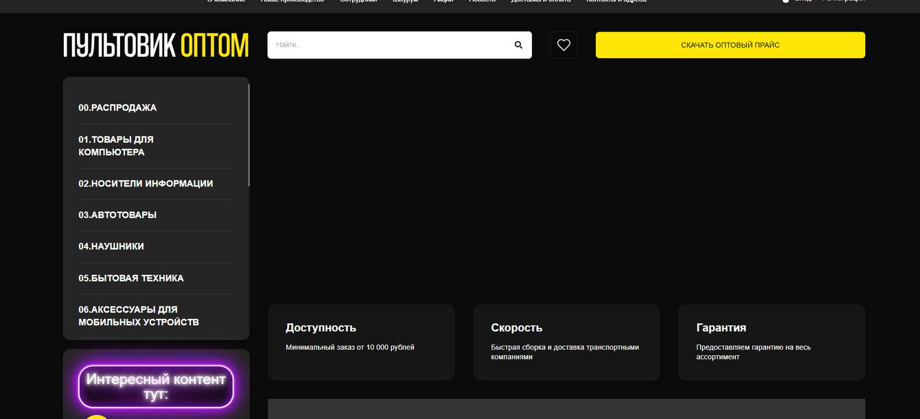 Компания «Пультовик-Оптом» занимается оптовыми поставками электроники и комплектующих. Клиенты — магазины, сервисные центры, монтажные компании и розничные продавцы.