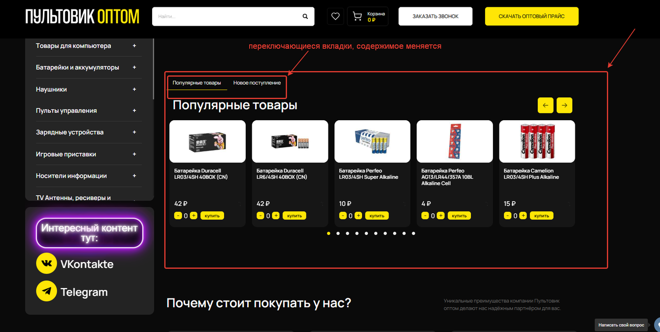 3. Поработать с позиционированием. Добавить блоки с УТП, преимуществами, чтобы показать, почему покупать оптом выгодно именно у «Пультовика».