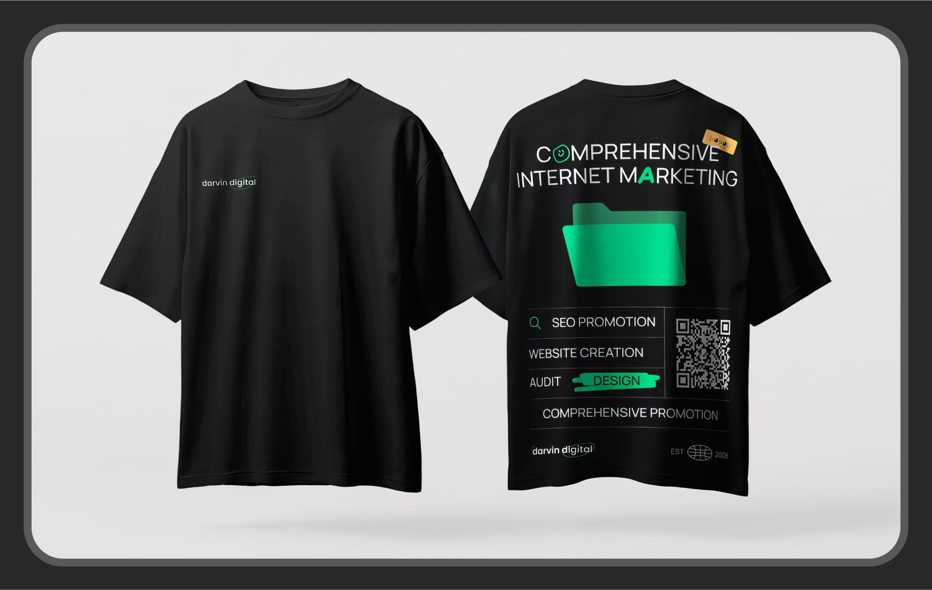 Помимо этого, позаботились о том, чтобы обновлённый фирменный стиль внедрить повсеместно. Мы адаптировали под свежий стиль все носители: визитки, шаблоны документов, презентации, графику для соцсетей. Даже заказали мерч для команды – футболки, стикеры, чтобы ощущать сопричастность к новому образу и закрепить новое лицо Darvin Digital во всех точках контакта с аудиторией.