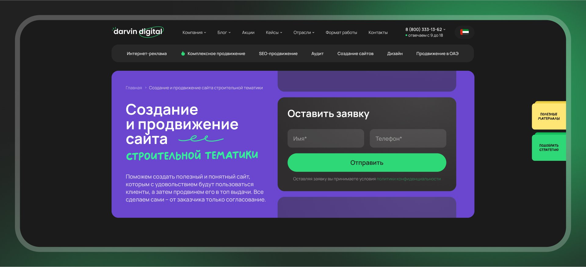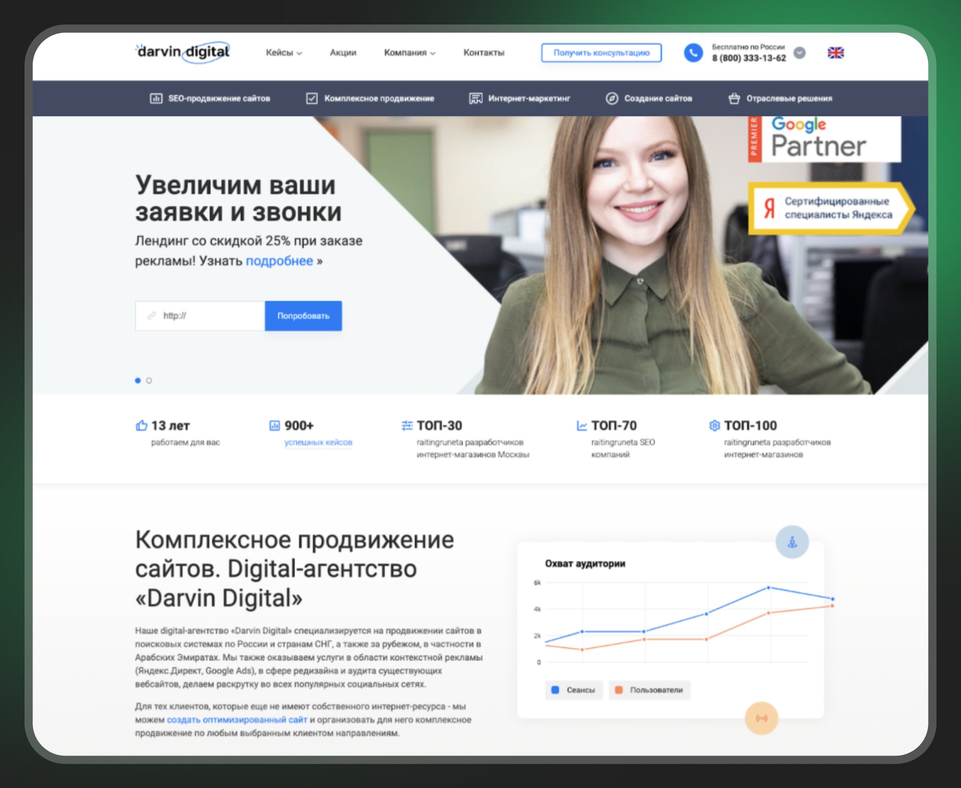Оставить заявку на создание или редизайн сайта, SEO-продвижение, аудит, бесплатную консультацию или просто посмотреть, какой классный сайт у нас получился, можно здесь – darvindigital.ru.