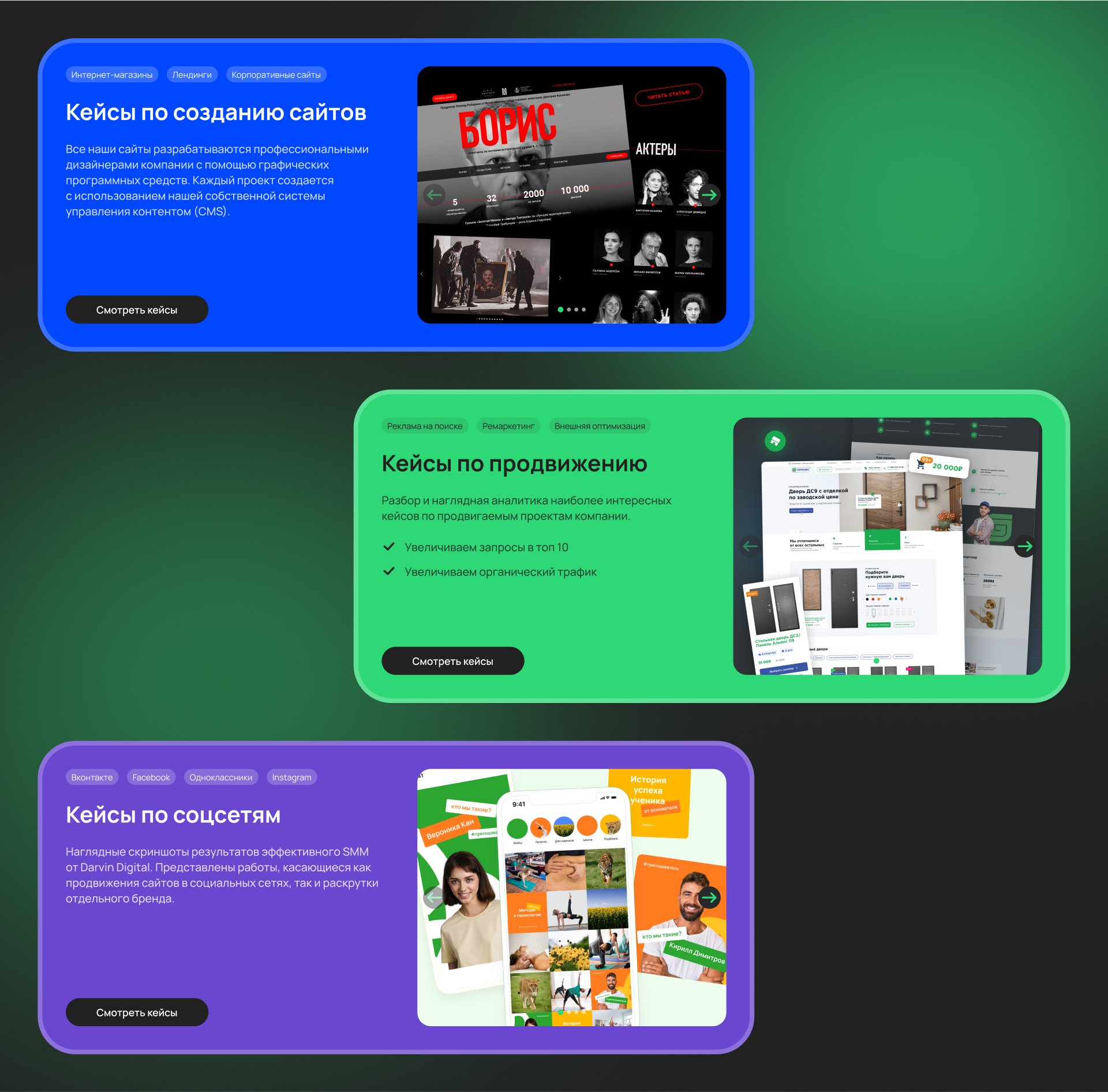 «Заходя на сайт, создавалось ощущение, что у нас и сайт старый, и кейсы старые, и всё старое. И вообще мы находимся не на текущей позиции, а лет на 5 назад» – отмечает арт-директор Darvin Digital Наталья Головченко.
