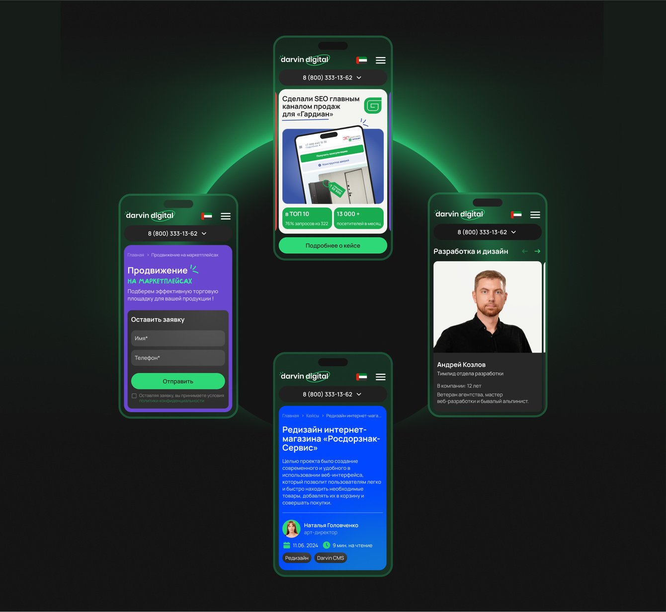 Darvin Digital – агентство с 16-летним опытом в digital-маркетинге. Мы создаём сайты, продвигаем проекты в eCom и B2B. Но собственный сайт больше не отражал наш уровень: визуал устарел, структура была перегруженной, тексты — неубедительными.