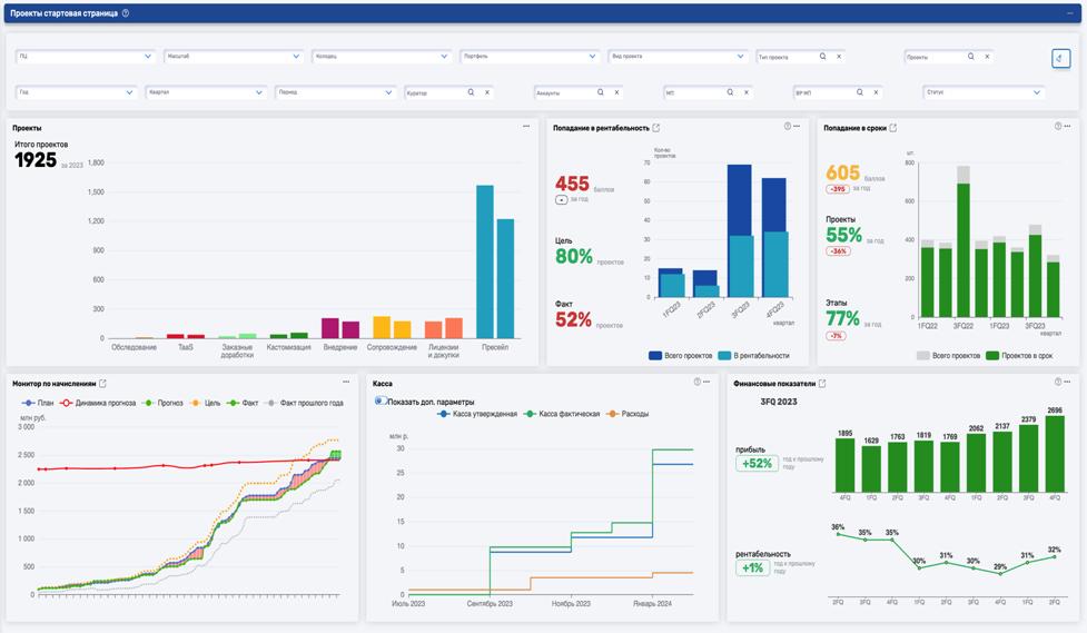 5. Отчётность: Самая любимая функция наших топ-менеджеров. Раньше, чтобы собрать статус по портфелю, нужно было три дня и отдел из трех человек. Сейчас — дашборды в реальном времени. Руководитель заходит и видит: «Ага, у этого проекта красный статус по срокам, у этого — перегруз ресурса».