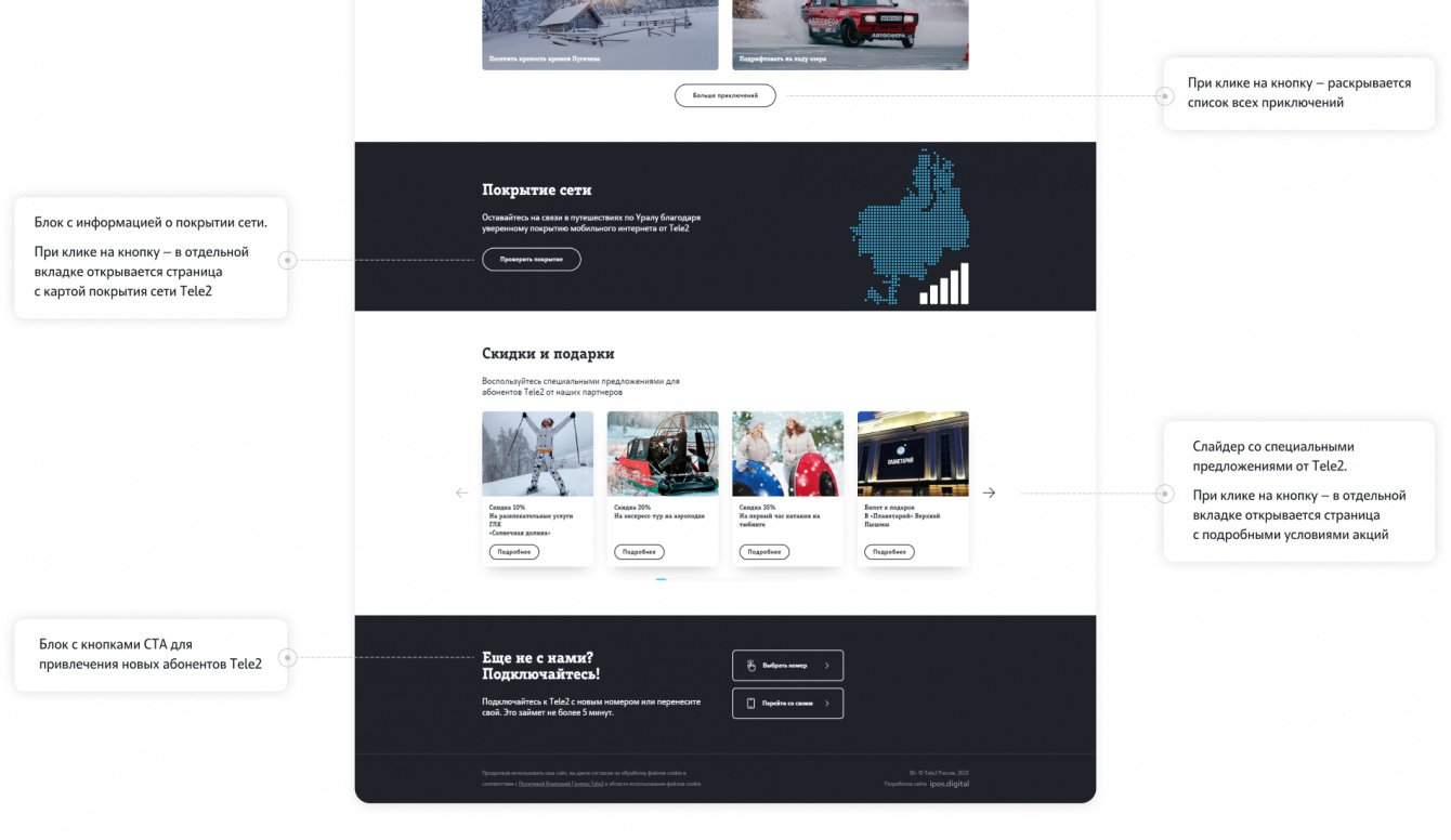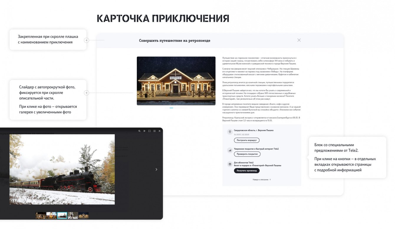 • разработка единого лендинга для публикации приключений по регионам Урала с приведением описания досуга, указанием информации по геолокации, партнерским офферам;