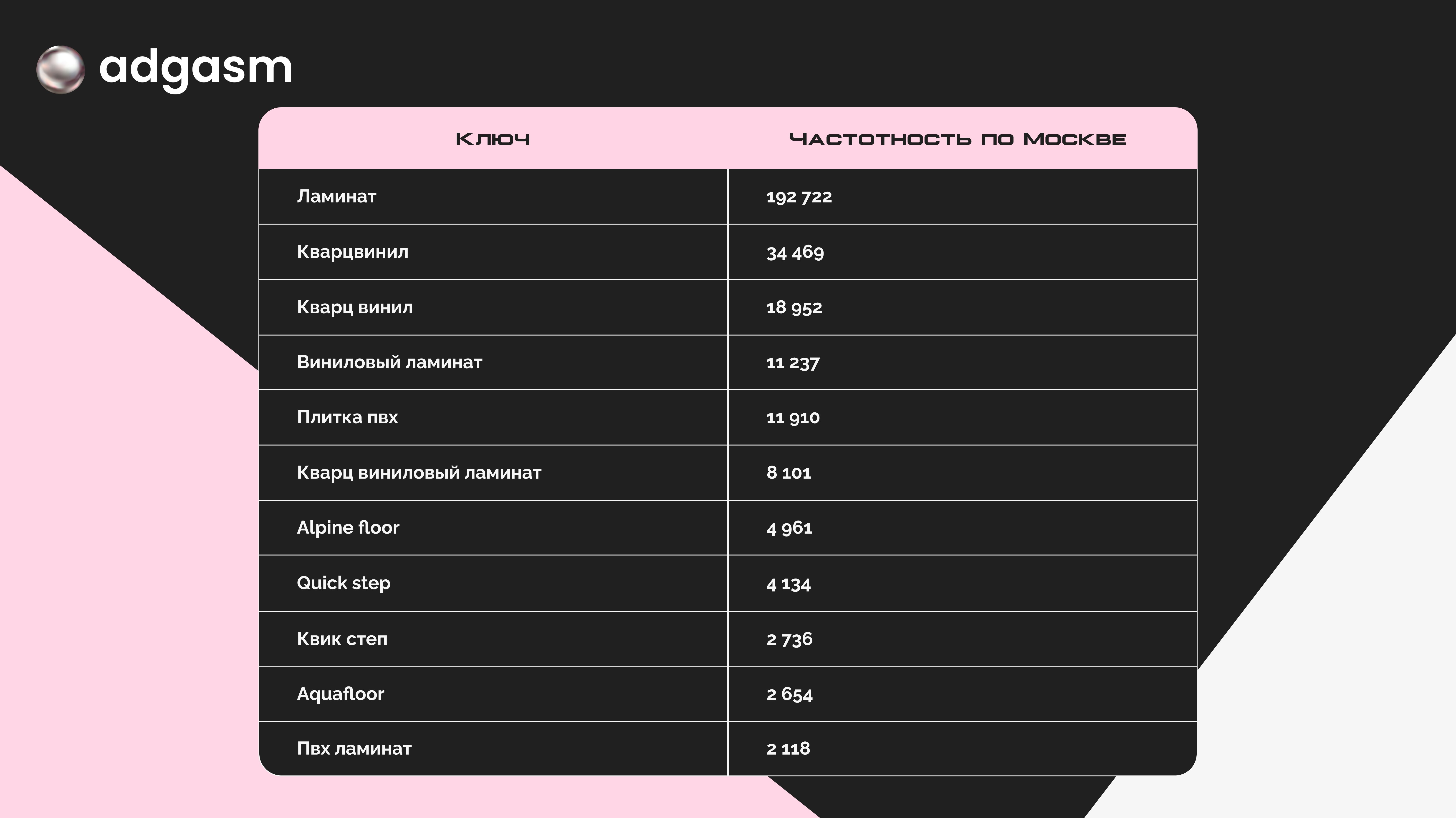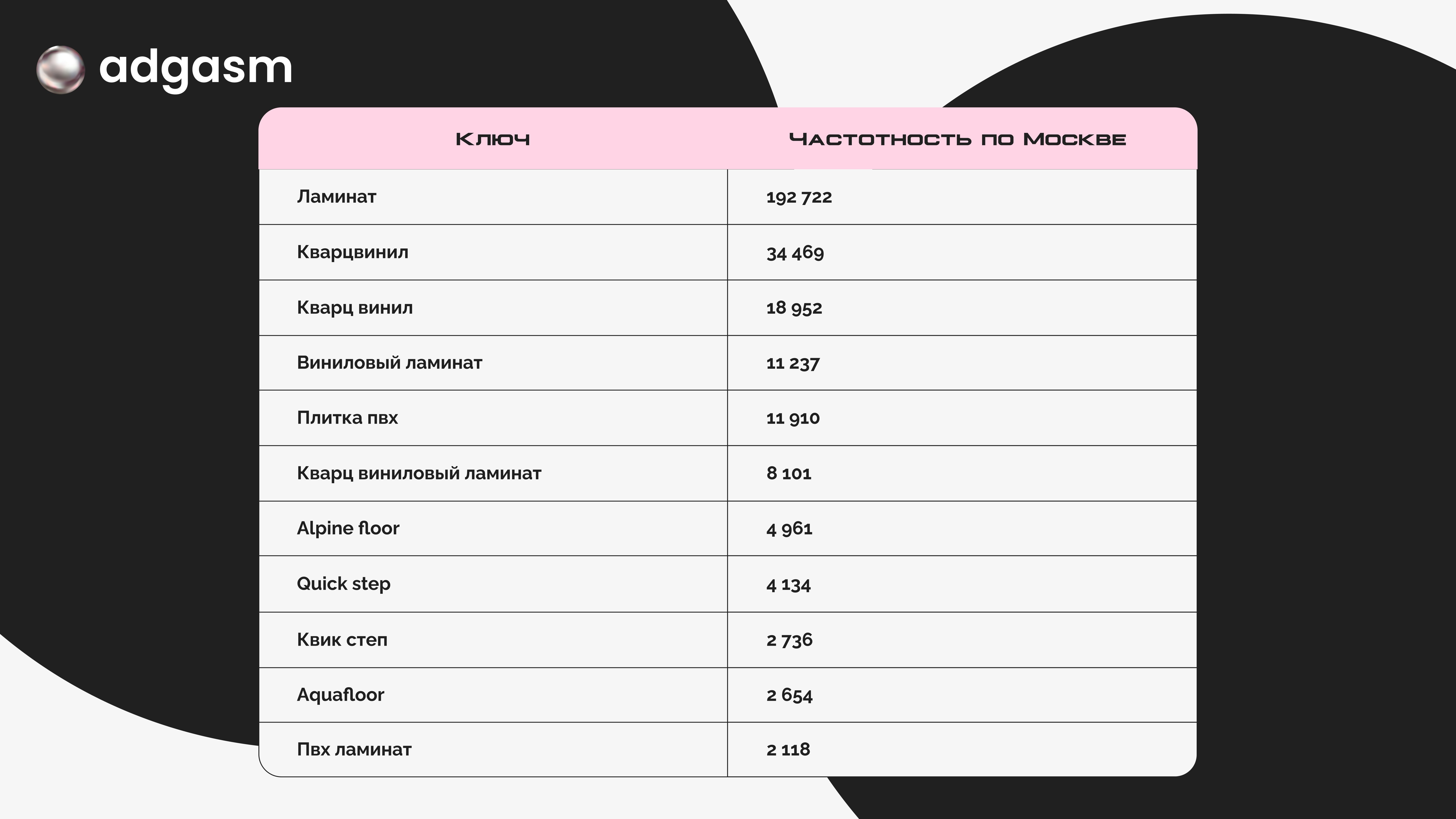 На первых местах оказались «ламинат», «кварцвинил» и «кварц винил».