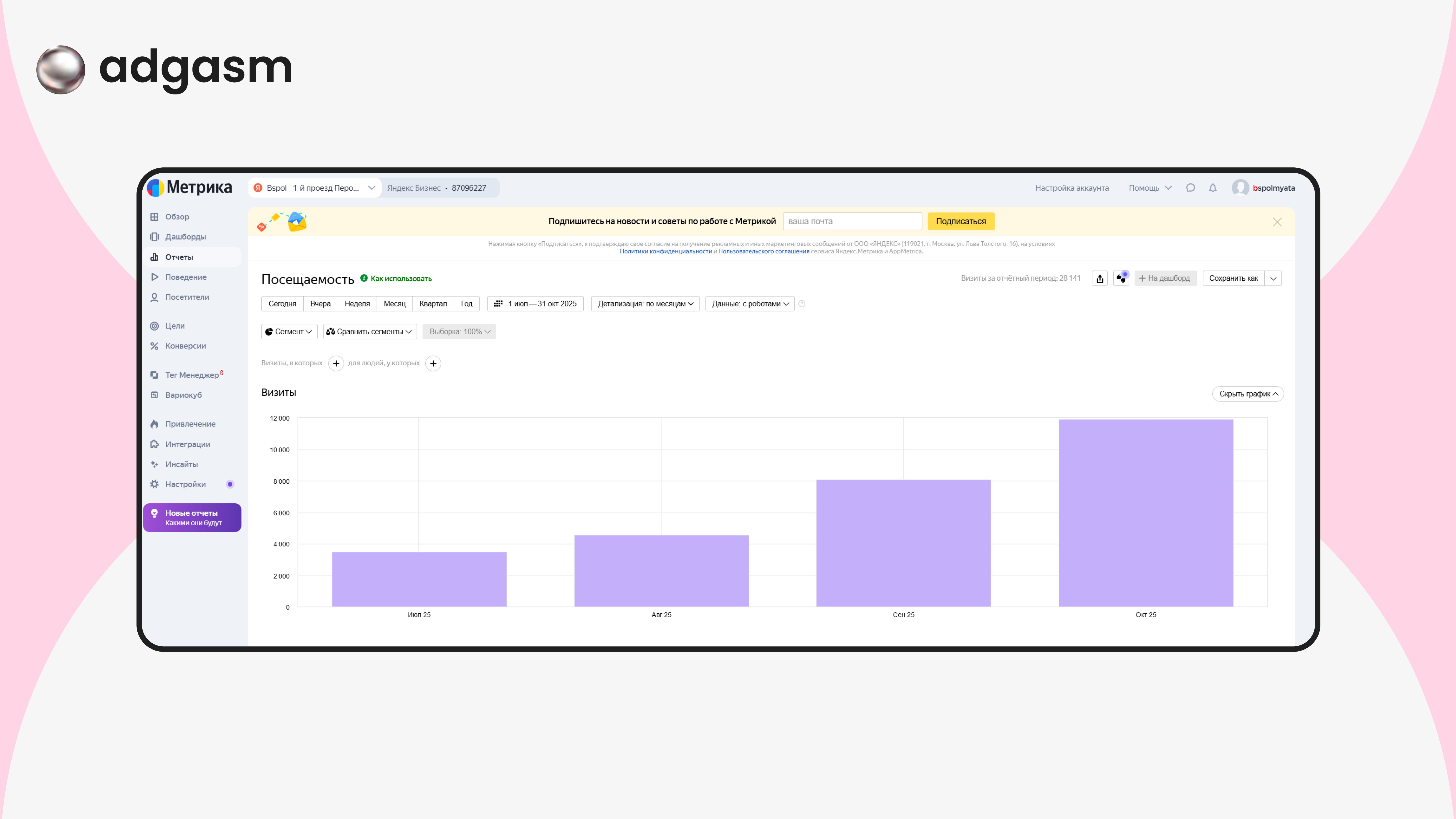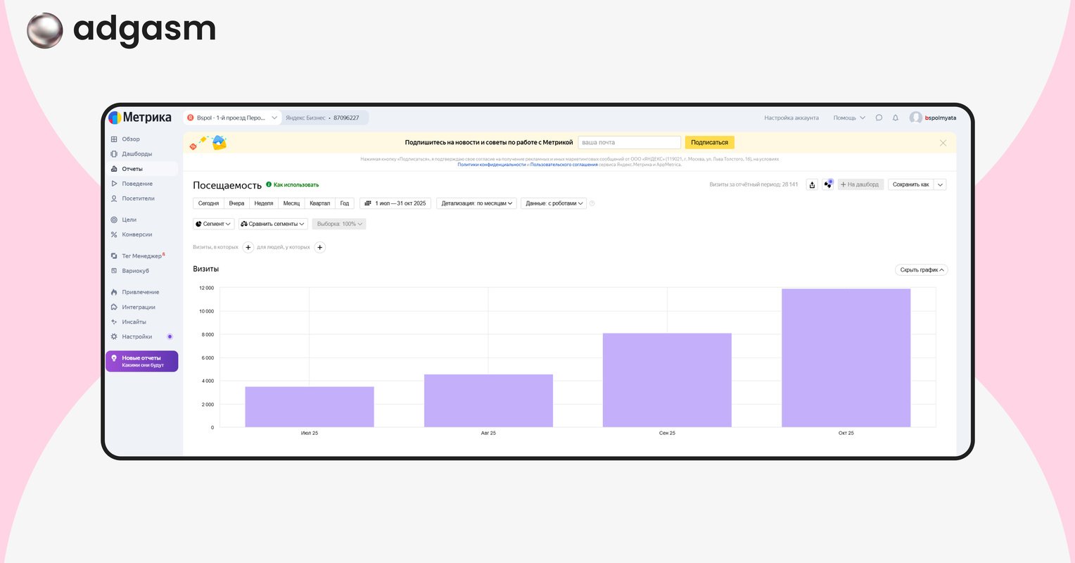 Мы увидели значительный прирост от месяца к месяцу. Количество посетителей за 3 месяца увеличилось в 3,5 раза, но этому поспособствовал и рост сезонного спроса.