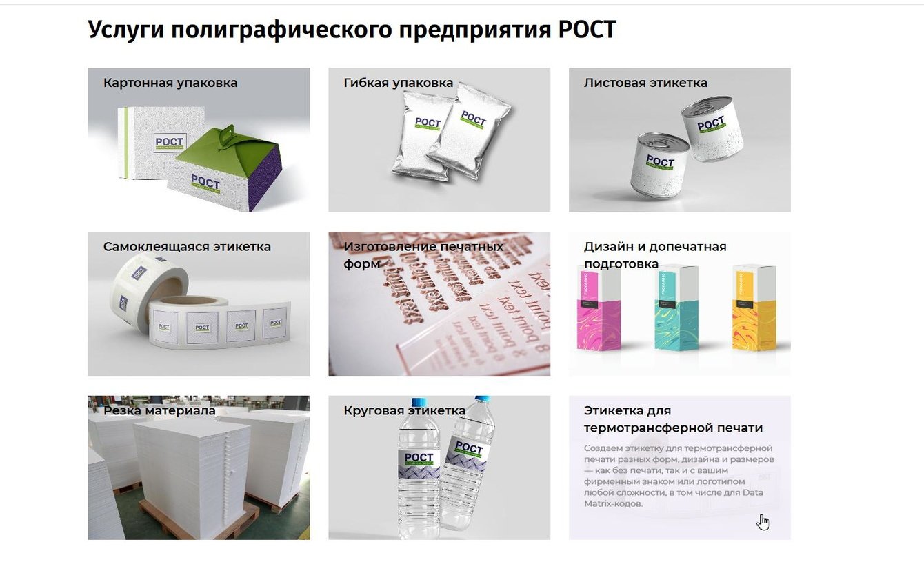 - Созданы отдельные посадочные страницы: «этикетки для алкогольной продукции», «этикетки для косметики», «этикетки для бытовой химии» и др.