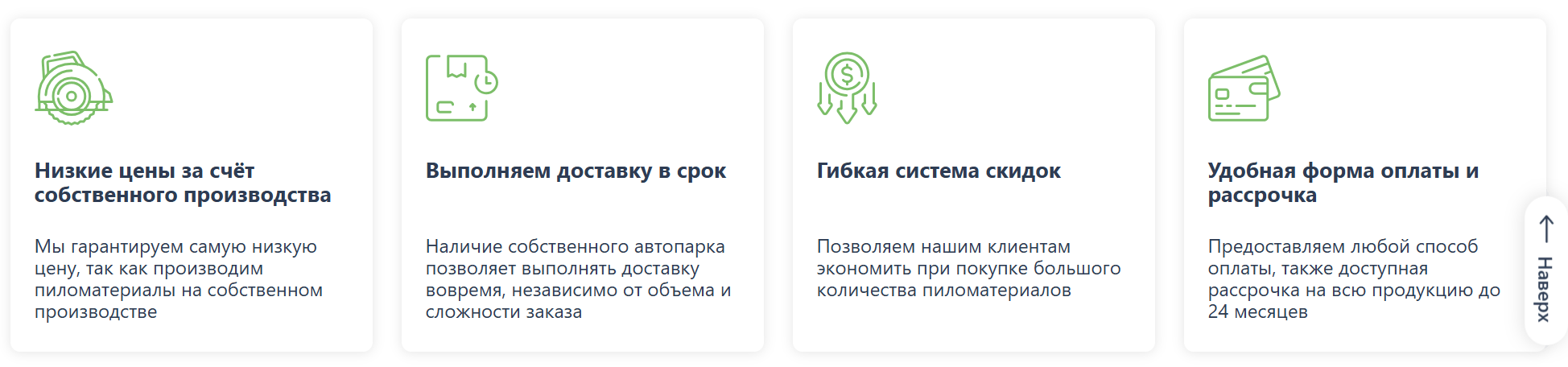 «СеверЛесГруп» — производитель и поставщик пиломатериалов, работающий как с частными клиентами (B2C), так и с крупными застройщиками (B2B).