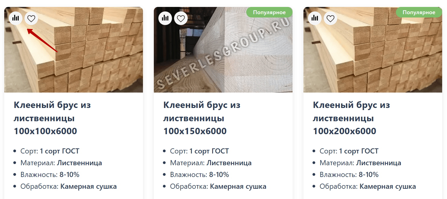 ✅Доработали блок сортировки. Указали сорта пиломатериалов в карточке товара.