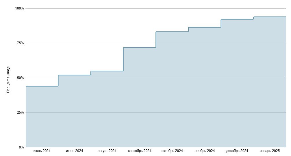 Благодаря постоянной работе над улучшением сайта процент видимости сдвинулся с мертвой точки уже в первый месяц и достиг 52%. К январю 2025 года этот показатель составил 93,97%🔥 Объём трафика на сайт также увеличился.