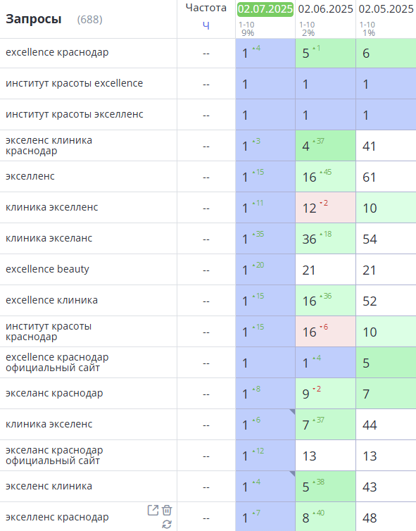 Увеличить целевой органический трафик на сайт клиники красоты Excellence за счет вывода ресурса в ТОП поисковых систем и повышения позиций по ключевым и брендовым запросам.