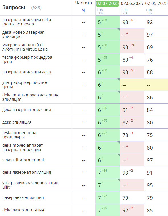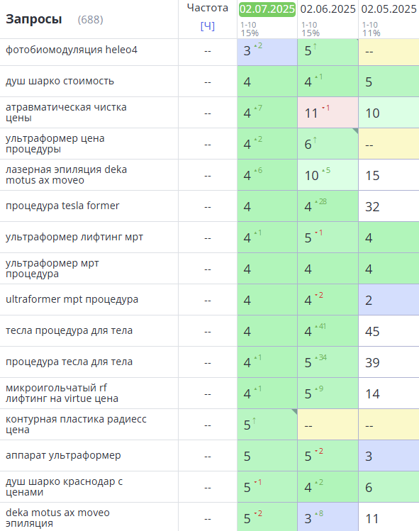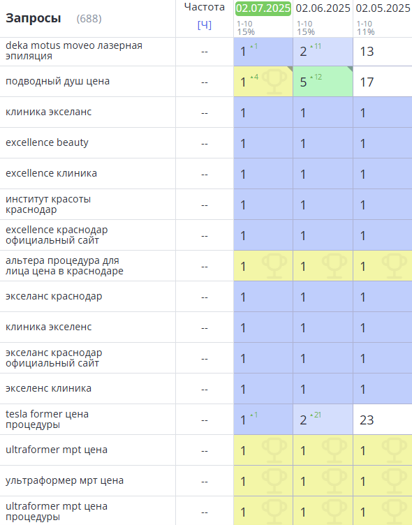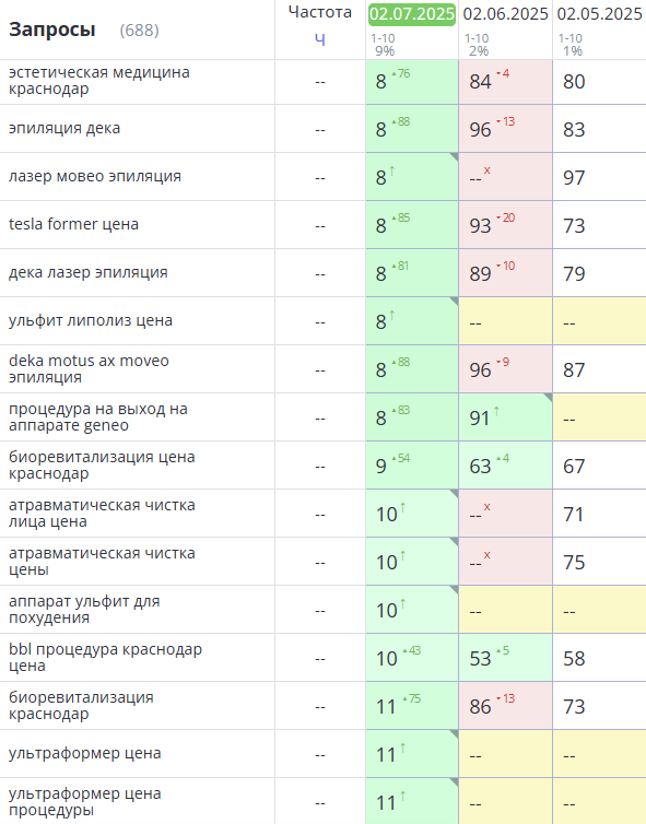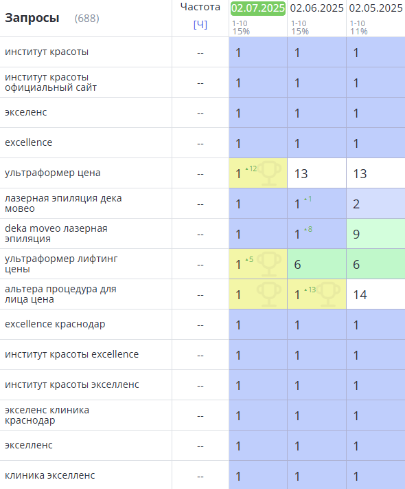 Динамика позиций в Яндекс: