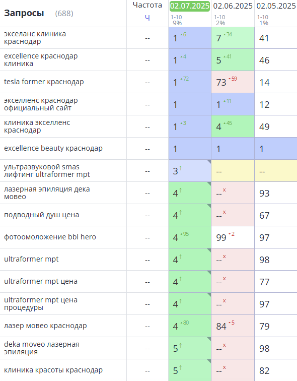 Благодаря комплексному SEO продвижению, сайт клиники Excellence не только вышел из-под фильтра, но и получил устойчивый рост трафика, а также улучшил видимость в Яндекс и Google. Это позволило повысить узнаваемость бренда и укрепить позиции клиники на высококонкурентном рынке эстетической медицины.