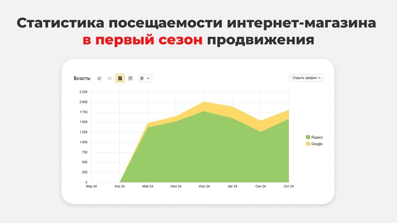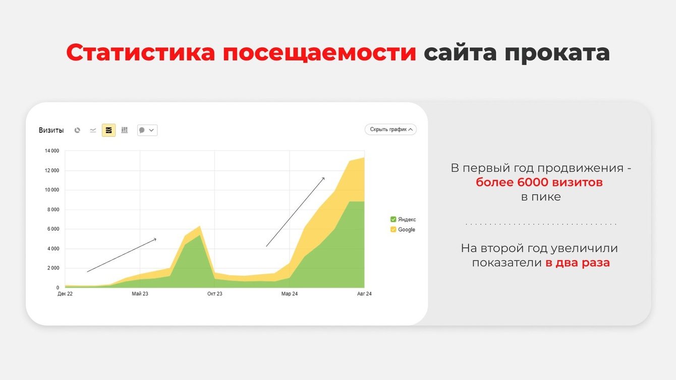 И тут началось самое интересное – мы запустили работы по SEO-продвижению. В январе 2023 начали активно продвигать сайт в поисковых системах и готовиться к сезону: