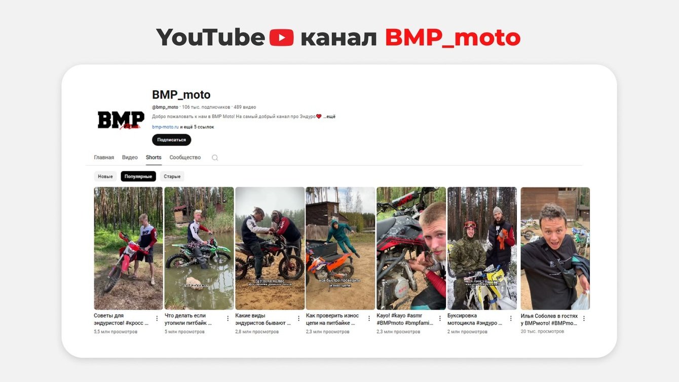 Этот успех на YouTube не только повысил узнаваемость BMP Moto, но и создал мощный маркетинговый инструмент, работающий на компанию без дополнительного рекламного бюджета. Теперь клиенты сами приходят за опытом, знаниями и эмоциями, а бренд плотно ассоциируется с настоящим вайбом эндуристов.