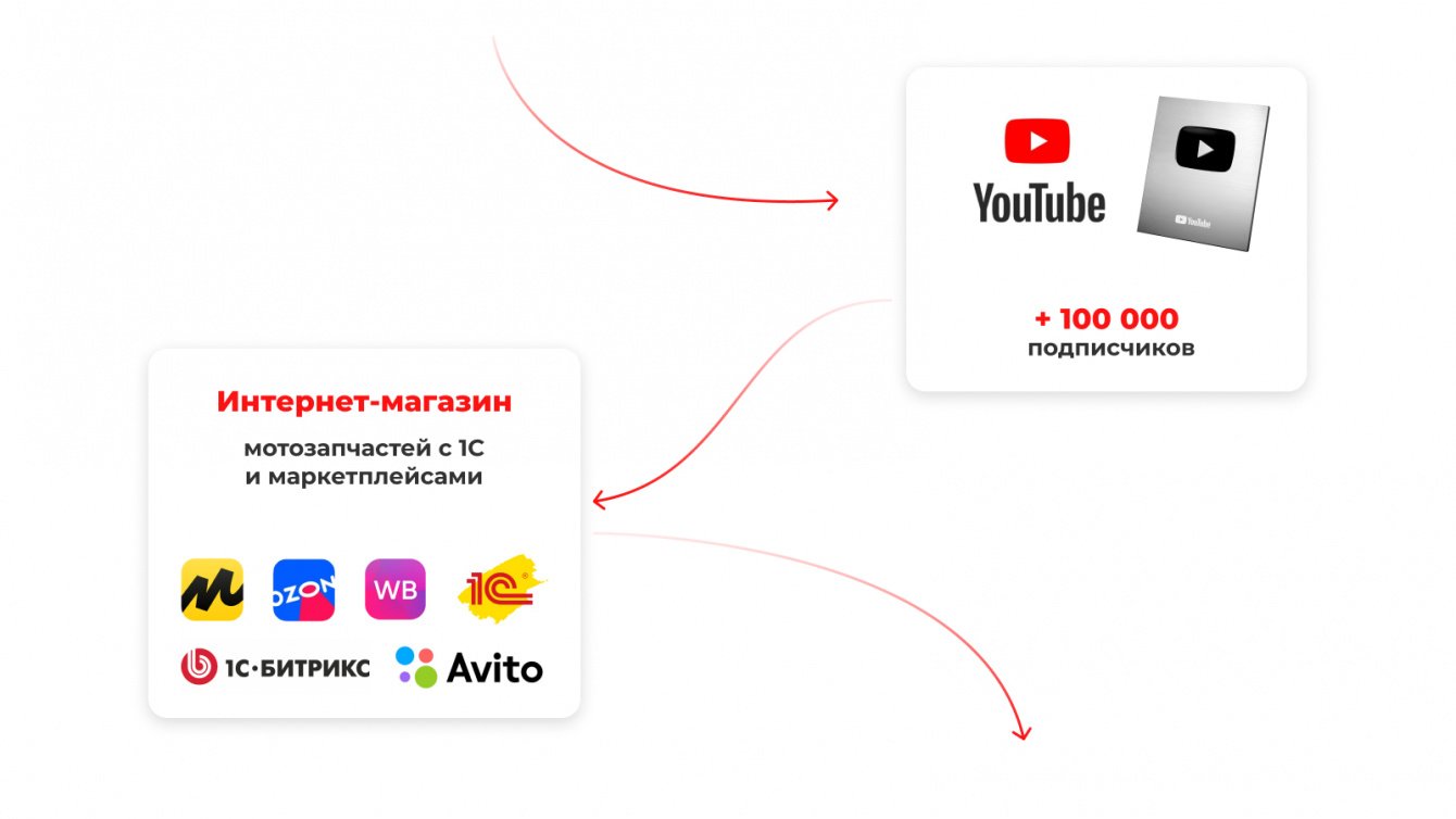 4. Выход на оптовый рынок — ребята нашли поставщиков в Китае, начали заказывать контейнерами и планируют построить логистическую сеть для оптовых продаж по всей России. Сейчас в разработке личный кабинет для оптовых покупателей и планы на запуск продажи не только запчастей, но и мототехники.