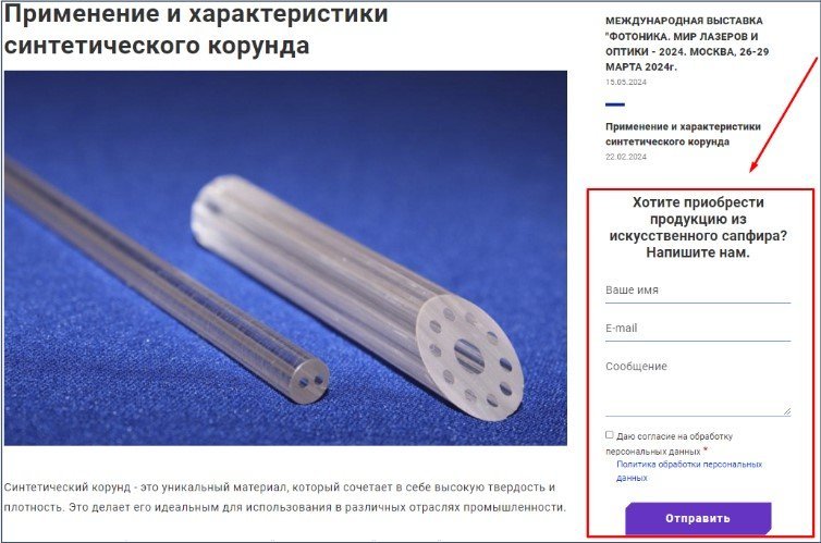 Добавили форму обратной связи в раздел «Статьи», чтобы потенциальный заказчик мог обратиться в компанию сразу после прочтения статьи.