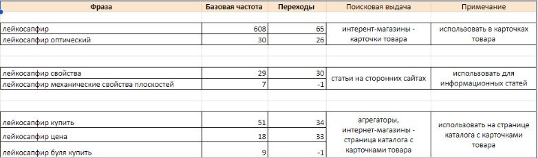 Отдельно вынесли запросы, по которым выходили сайты с ювелирными украшениями. Сразу исключили их из дальнейшей работы.