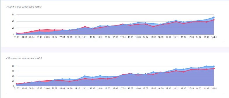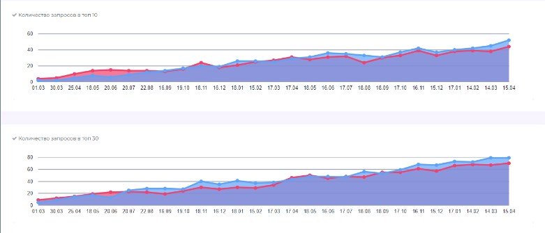 Вывели 35% запросов в ТОП-10 в Google и 30% — в Яндексе.