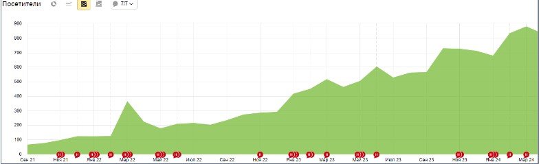 Сначала трафик на сайте постоянно рос, но с апреля 2022 г. он и заявки начали резко падать.