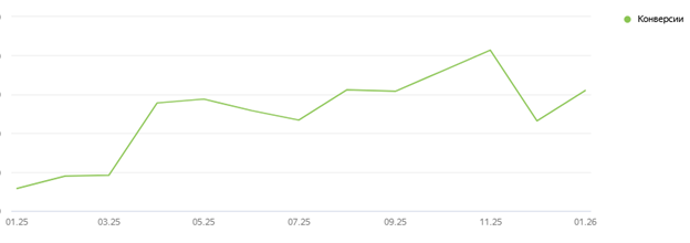Поиск обеспечил стабильный поток конверсий. Стоимость конверсий была примерно в 2 раза выше, чем у Товарной кампании, что ожидаемо: на поиске выкупаются конкретные «горячие» запросы.