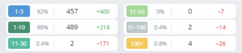 • 98 % (1 667) всех запросов попало в ТОП-10 Яндекса;