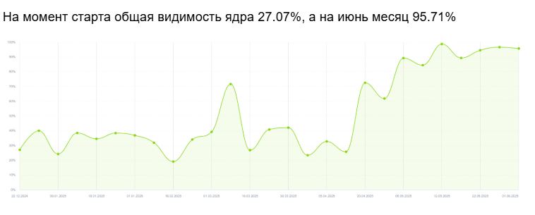 На момент старта общая видимость ядра 27.07%, а на июнь месяц 95.71%