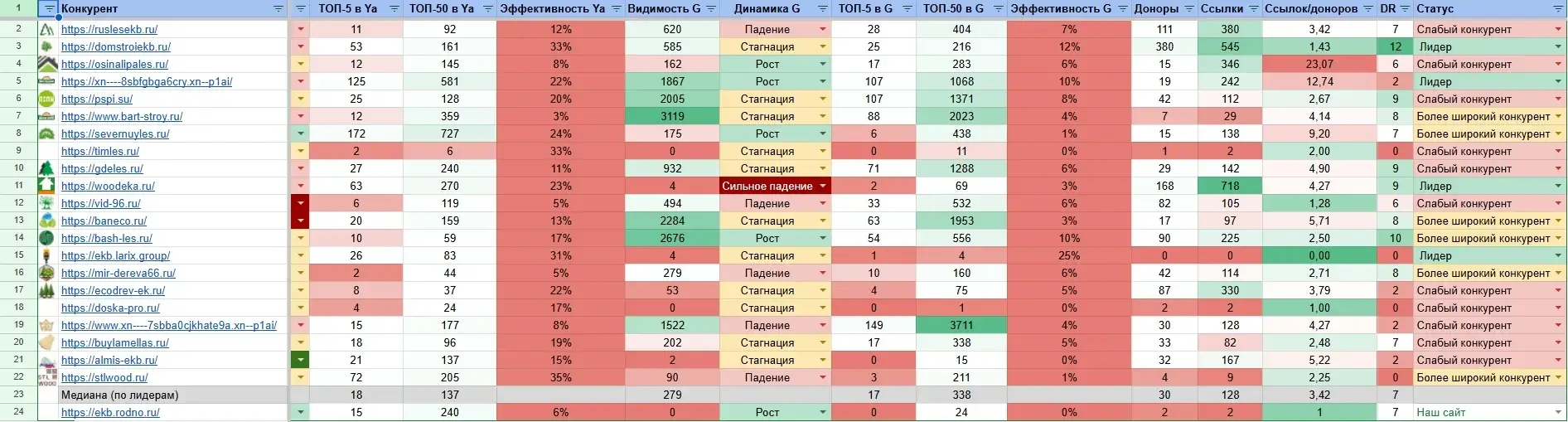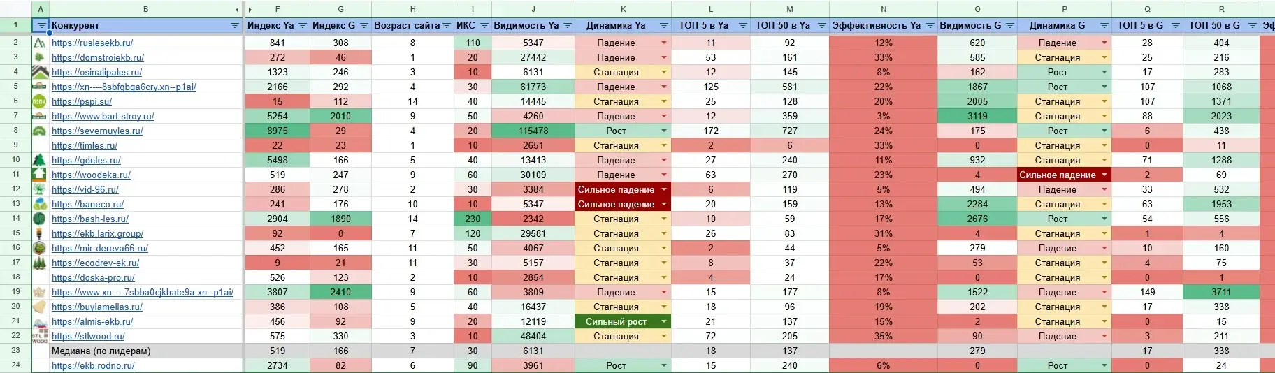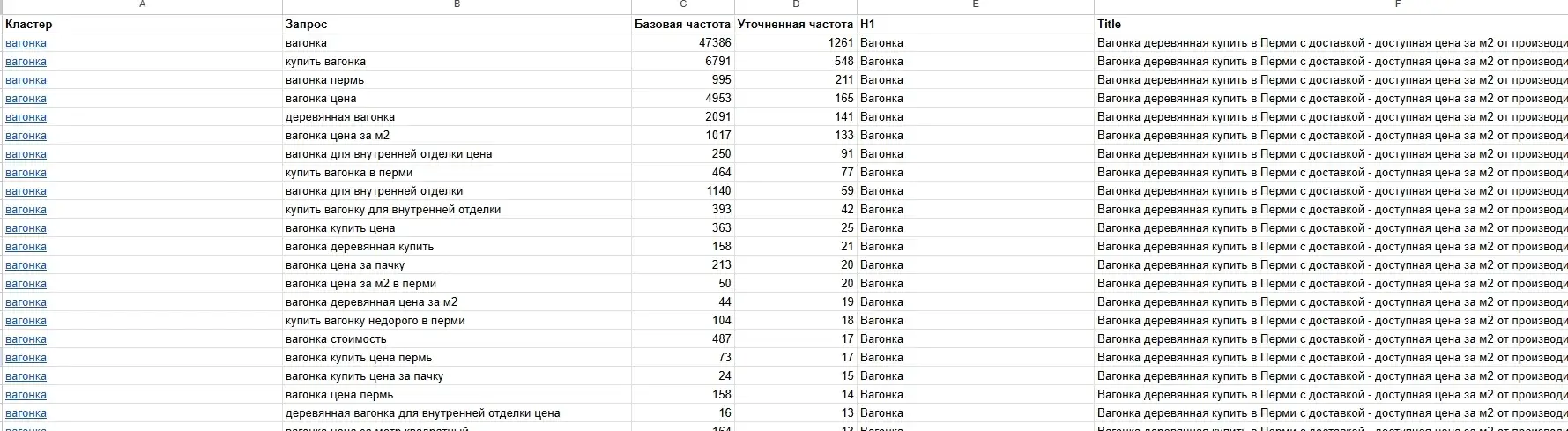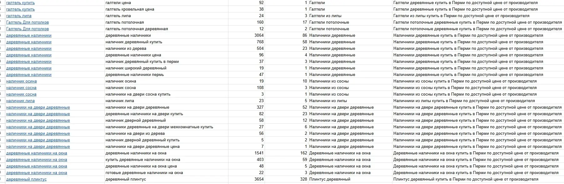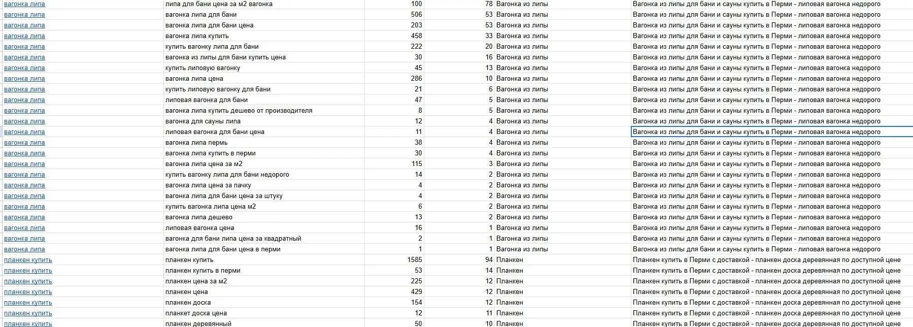 Первым этапом мы провели глубокий анализ конкурентов в нише пиломатериалов Перми. Это позволило выявить лидеров рынка и понять их стратегии продвижения.