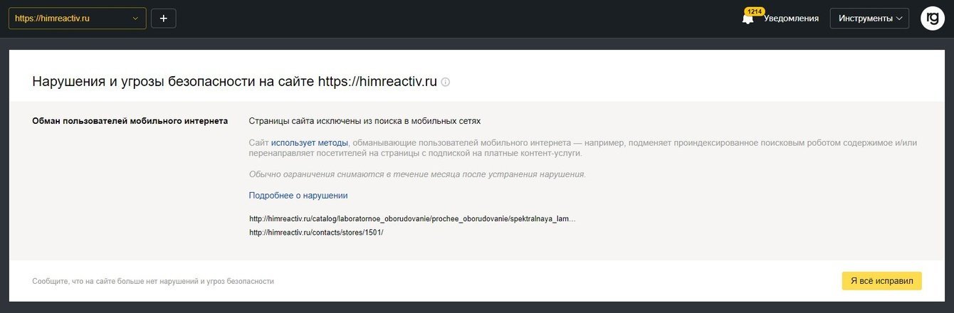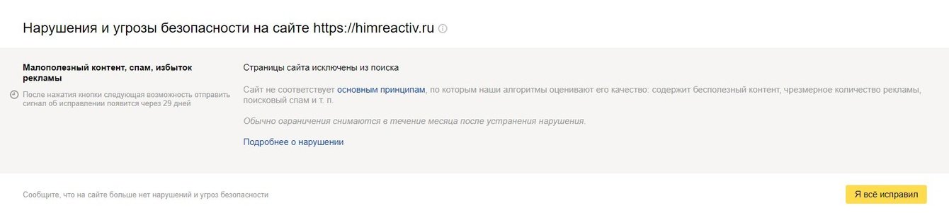 За всё время продвижения проекта в панель Вебмастера прилетало 3-4 различных фильтров, со всеми из них мы успешно справились!