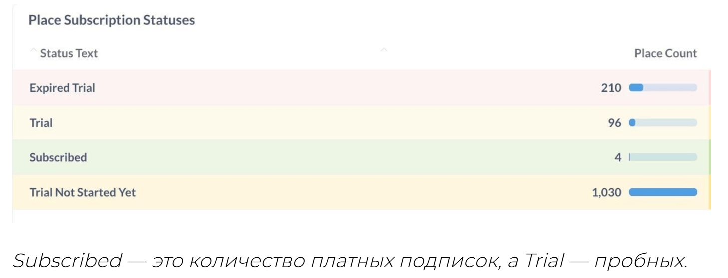 А вот из целевых, англоговорящих стран с высоким уровнем дохода, скачиваний было всего около сотни. Самое главное — никто из установивших приложение не регистрировал свой бизнес и не покупал платную подписку.