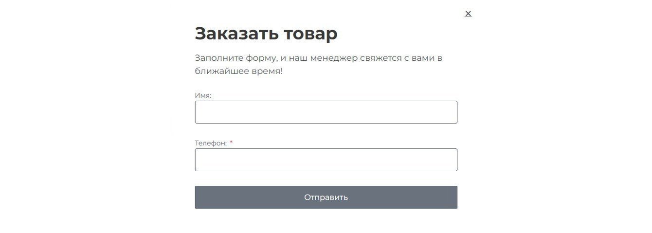 Но посетители не могли совершить покупку товара, воспользовавшись Корзиной, ввиду отсутствия данного функционала на сайте. Поэтому на замену мы поставили переадресацию на оформление заявки через форму заказа: