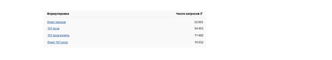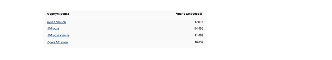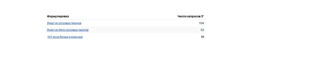 Flor2u тестировали разные запросы в контекстной рекламе. Сосредоточились на нескольких популярных, например “доставка цветов в Москве”. Стоимость клика в Яндекс Директ была высокой, но и конверсия по этим запросам - максимальная. Заказчик планировал продвигать те же самые запросы в поисковой выдаче.