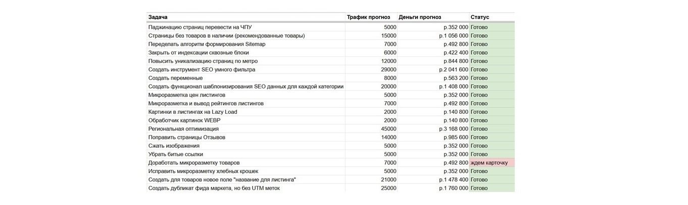 Мы с командой создали внушительный backlog SEO-задач и отправили отделу разработки клиента. Но сделать все сразу было невозможно. Разработчики не знали, за что хвататься.