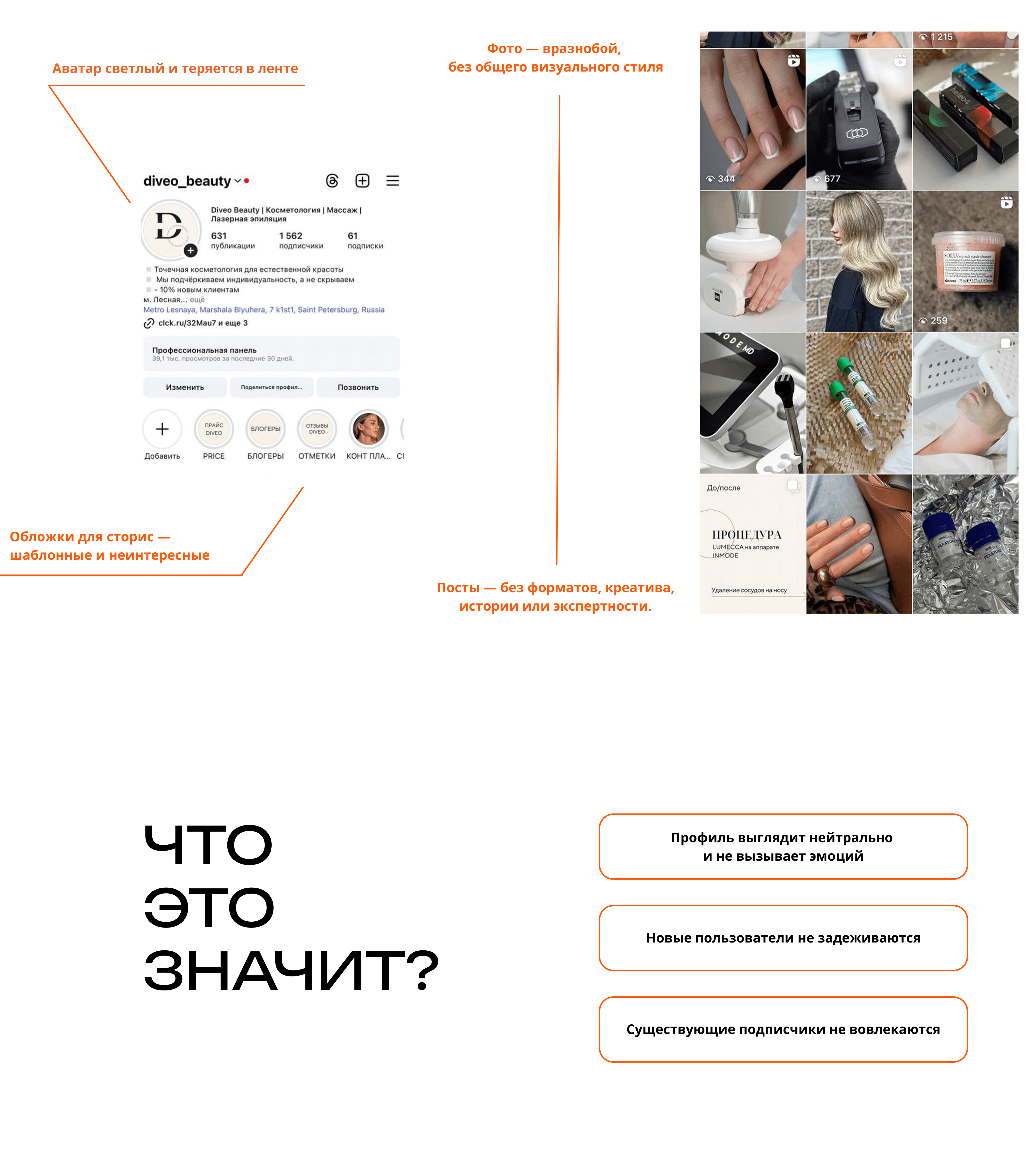 На фоне бурной конкуренции в бьюти-сфере это был красочный «антипример»: работы мастеров — отличные, но упаковка аккаунта не вызывала желания остаться, подписаться и, главное, записаться.