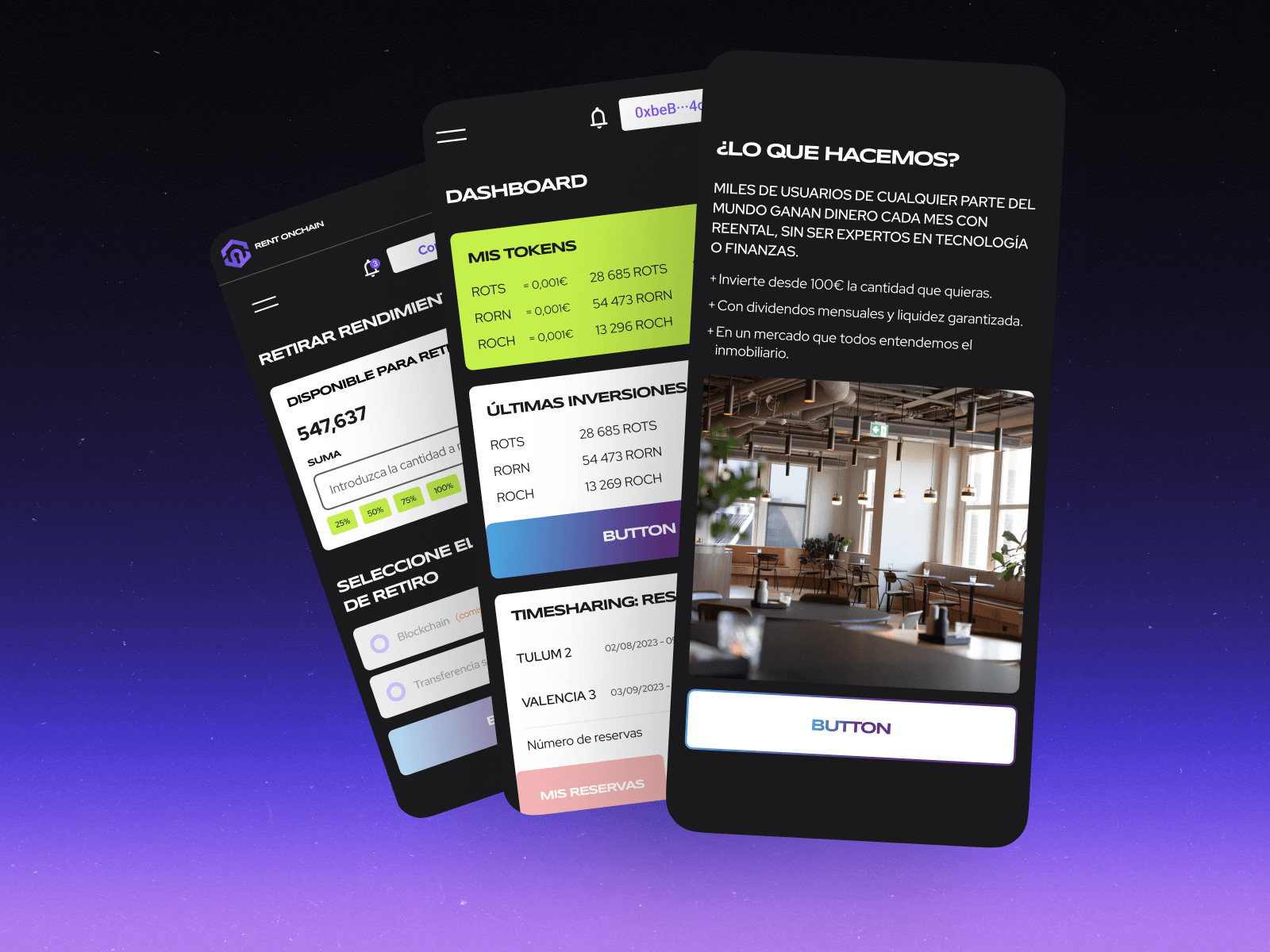 3. Разработать UX/UI интерфейсы для платформы таймшеринга, NFT-маркетплейса, лендингов, мобильного приложения и личного кабинета пользователя.