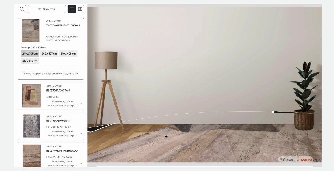 • Внедрить сервис Roomvo для виртуальной примерки ковров в интерьере;