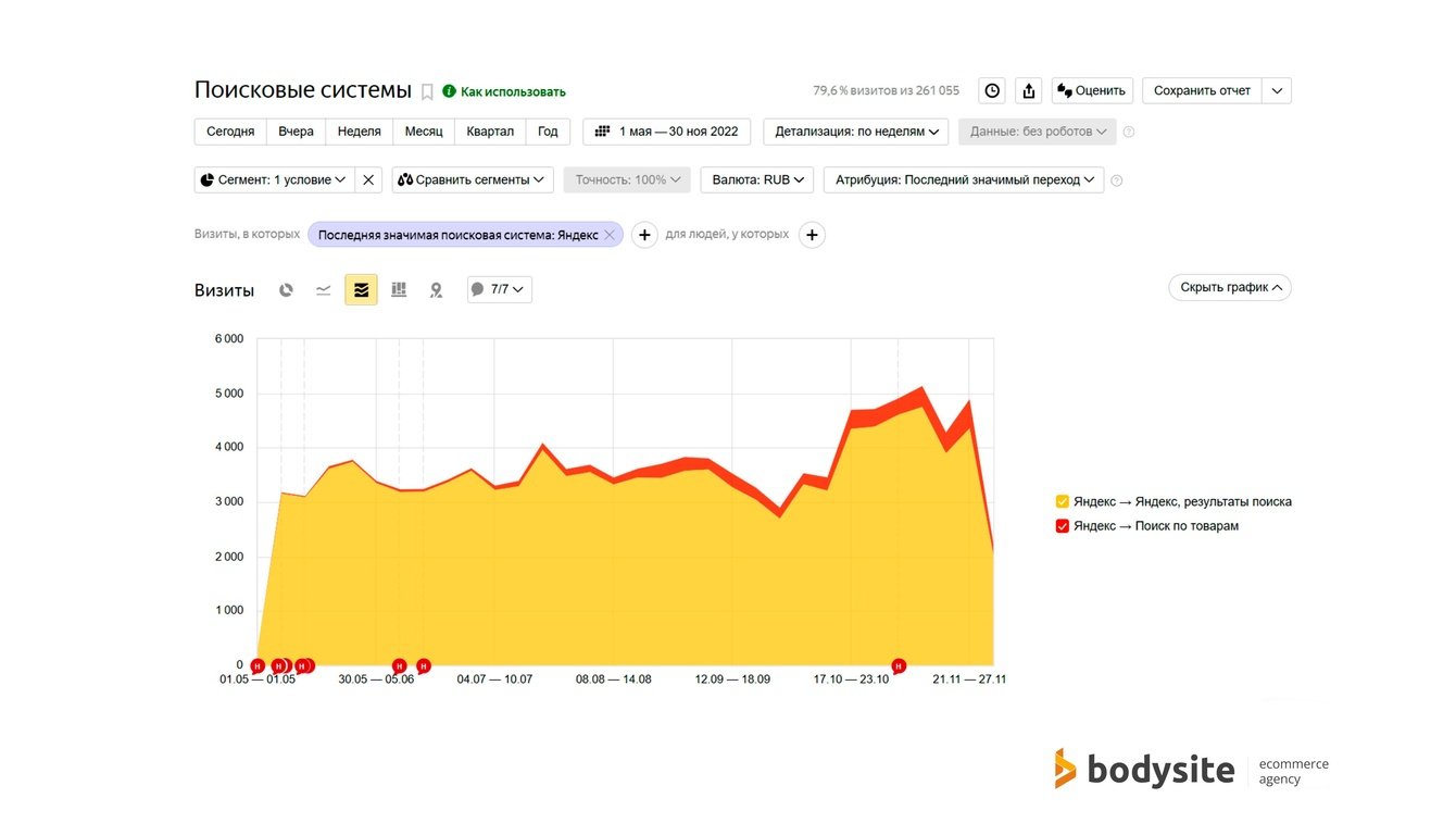 Сервис Яндекс Товары был запущен в тестовом режиме в начале 2022 года. Мы сразу начали его тестировать, подключали магазины из разных тематик и получали хорошие результаты почти у каждого из них.